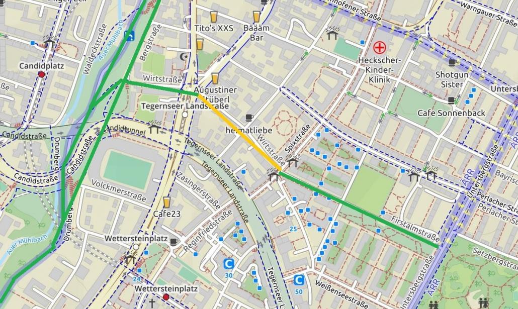 Wir tragen unsere Bewertungen nach Happy Bike Level in OpenStreetMap ein, mit Pizza und guter Laune
